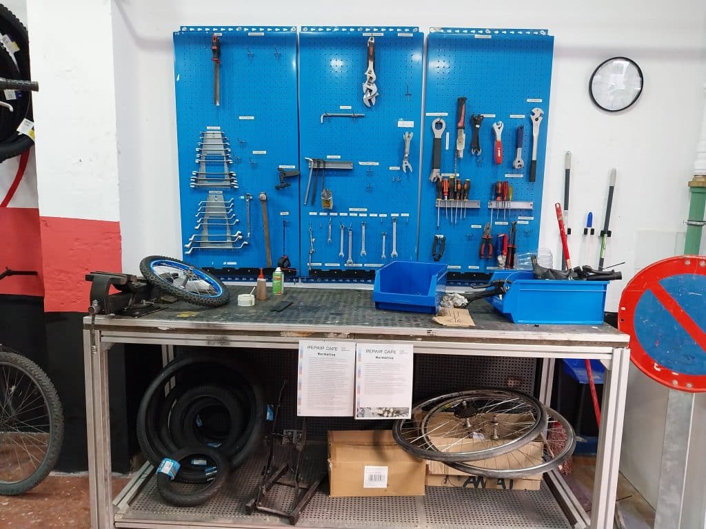 • Els tallers ensenyen a reparar bicicletes, electrodomèstics menuts o a apedaçar roba per allargar la vida útil de les coses, reduir residus i estalviar.
